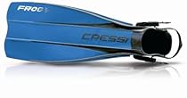 Oh Cressi Frog Open Heel Diving Fins A classic, the the Cressi-sub Frog open heel dive fin was the original fin from Cressi to incorporate the `Blade Along the Pocket` design, and has been one of the most famous fins for over 10 years. The patented design has made it one of Cressi`s best-selling open-heel dive fins. The blade design is stiffer than the Pro Light, and is well suited for cold-water diving in currents or beach diving conditions, or for divers who have a stronger kick and want more of a power fin. Details: Quick release, quick-adjust buckle makes adjusting ... » Continue Reading about Cressi Frog Open Heel Diving Fins.